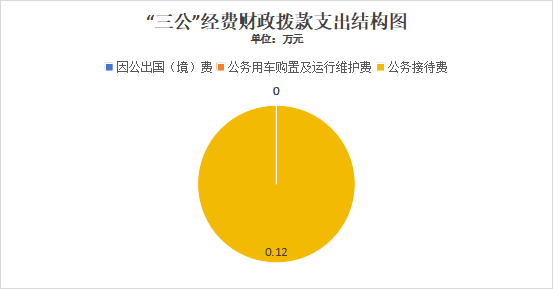 2023年度“三公”经费财政拨款支出决算中,因公出国(境)费支出决算0万元,占0%;公务用车购置及运行维护费支出决算0万元,占0%;公务接待费支出决算0.12万元,占100%。具体情况如下: