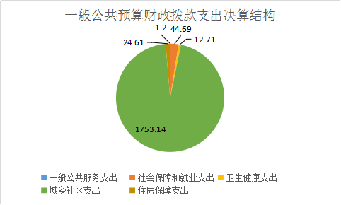 2023年度一般公共预算财政拨款支出1836.35万元,主要用于以下方面:一般公共服务支出1.2万元,占0.1%;社会保障和就业支出44.69万元,占2.4%;卫生健康支出12.71万元,占0.7%;城乡社区支出1753.14万元,占95.5%;住房保障支出24.61万元,占1.3%。