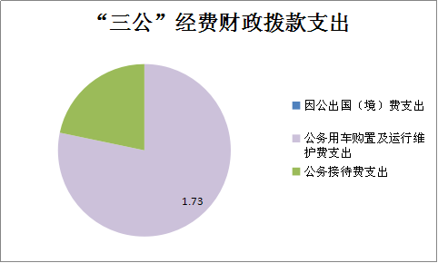 2023年度“三公”经费财政拨款支出决算中,因公出国(境)费支出决算0万元,占0%;公务用车购置及运行维护费支出决算1.73万元,占78.3%;公务接待费支出决算0.48万元,占21.7%。具体情况如下: