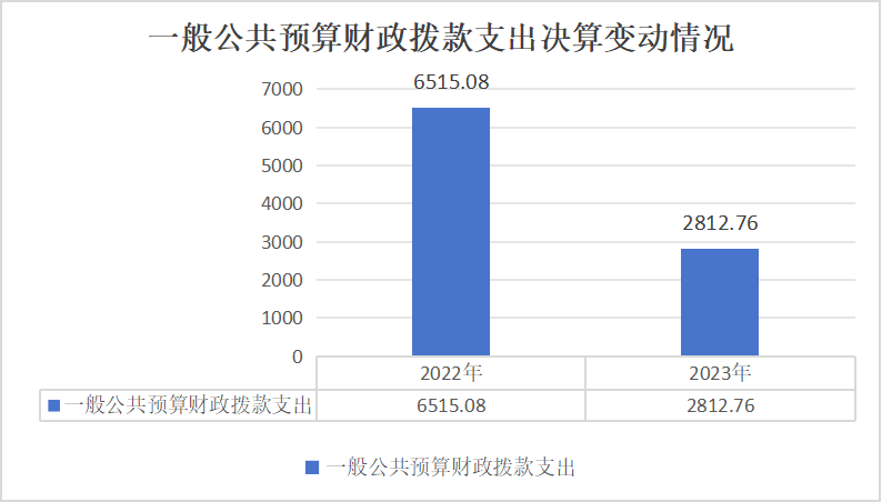 2023年度一般公共预算财政拨款支出2812.76万元,占本年支出合计的18.02%。与2022年度相比,一般公共预算财政拨款支出减少3702.32万元,下降56.83%。主要变动原因是教育支出、文化旅游体育与传媒支出、农林水支出、其他支出减少。