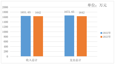 2023年度收、支总计均为1642万元。与2022年度相比,收、支总计各减少9.65万元、30.65万元,各下降0.6%、1.8%。主要变动原因是厉行节约,压减开支。