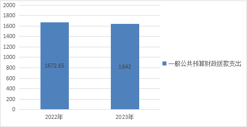 2023年度一般公共预算财政拨款支出1642万元,占本年支出合计的100%。与2022年度相比,一般公共预算财政拨款支出减少30.65万元,下降1.8%。主要变动原因是厉行节约,压减开支。