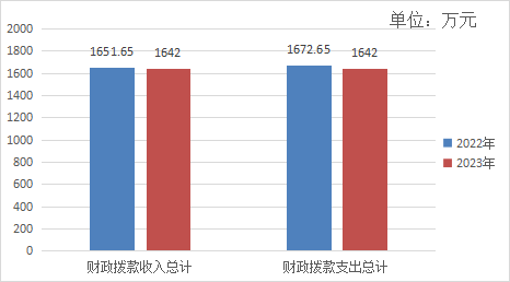 2023年度财政拨款收、支总计均为1642万元。与2022年度相比,财政拨款收、支总计各减少9.65万元、30.65万元,各下降0.6%、1.8%。主要变动原因是厉行节约,压减开支。