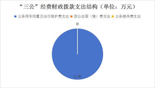 2023年度“三公”经费财政拨款支出决算中,因公出国(境)费支出决算0万元,占0%;公务用车购置及运行维护费支出决算5.78万元,占100%;公务接待费支出决算0万元,占0%。具体情况如下: