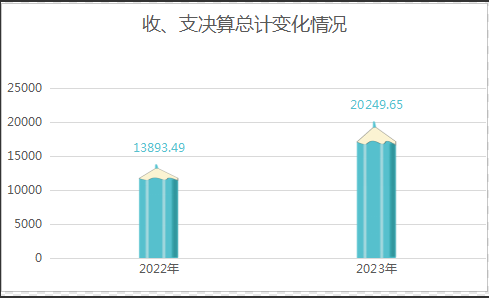2023年度收、支总计均为20249.65万元。与2022年度相比,收、支总计各增加6356.16万元,增长45.75%。主要变动原因是为壮大国有企业规模,提升国企造血功能,年度内为国企投入大量注册资本金、项目资本金等累计达20000余万元。