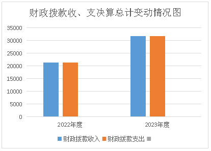 2023年度财政拨款收、支总计均为31,655.63万元。与2022年度相比,财政拨款收、支总计各增加10273.09万元,增长32.5%。主要变动原因是上级转移支付收入增加。