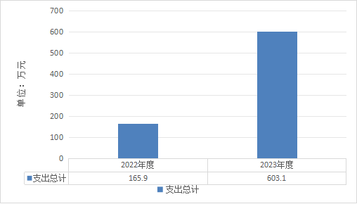 2023年度一般公共预算财政拨款支出603.1万元,占本年支出合计的100%。与2022年度相比,一般公共预算财政拨款支出增加437.2万元,增长263.5%。主要变动原因是项目资金大量增加