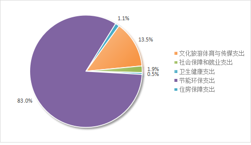 2023年度一般公共预算财政拨款支出603.1万元,主要用于以下方面:文化旅游体育与传媒支出81.29万元,占比13.5%;社会保障和就业支出11.42万元,占1.9%;卫生健康支出3.24万元,占0.5%;节能环保支出500.28万元,占比83%;住房保障支出6.87万元,占1.1%。