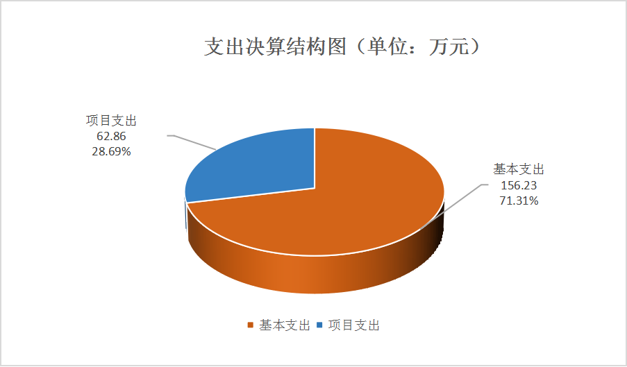 2023年度本年支出合计219.09万元,其中:基本支出156.23万元,占71.3%;项目支出62.86万元,占28.69%。