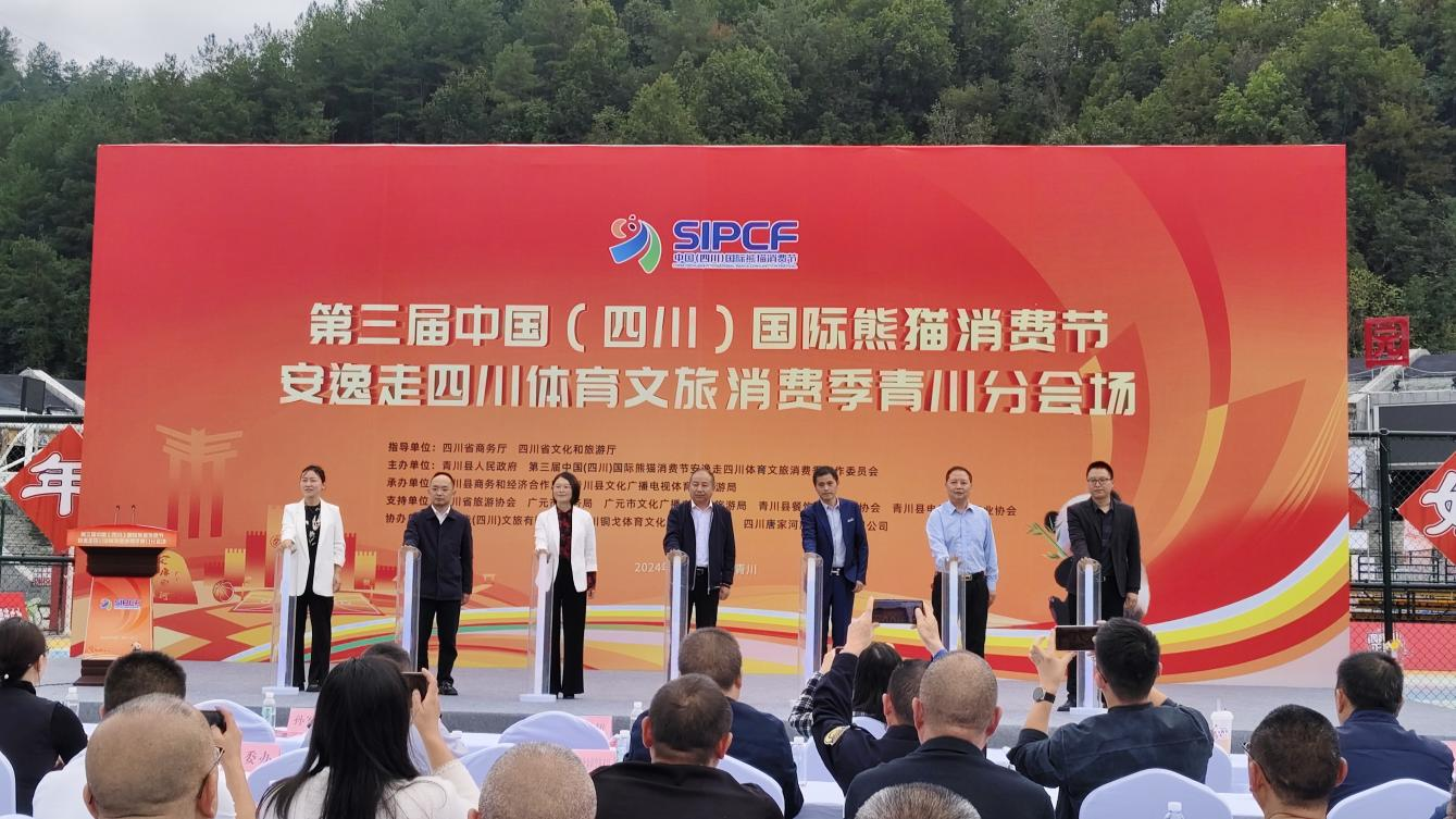 省、市、县等相关领导嘉宾共同登台,启动第三届中国(四川)国际熊猫消费节安逸走四川体育文旅消费季青川分会场活动。参加启动仪式的还有青川县相关部门、乡镇,以及青川县相关行业协会和企业代表等。举办本次活动旨在加快文化、旅游、体育、经贸等深度融合,进一步推动全域旅游大发展,文旅大融合、产业大升级,培育发展新动能,扩大服务消费,奋力开创新时代青川发展新局面。