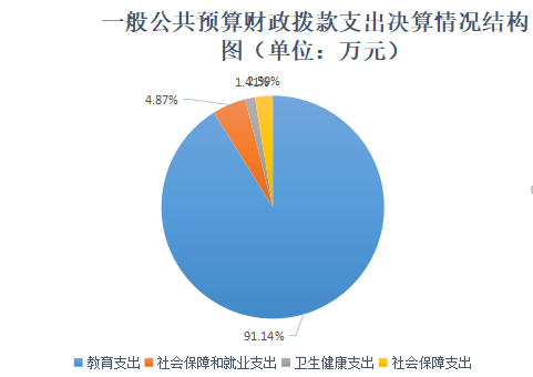 2023年度一般公共预算财政拨款支出6728.15万元,主要用于以下方面:教育支出6132.02万元,占91.14%;社会保障和就业支出327.56万元,占4.87%;卫生健康支出94.34万元,占1.41%;住房保障支出174.23万元,占2.59%;