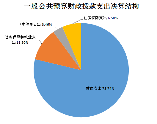 2023年度一般公共预算财政拨款支出3874.42万元,主要用于以下方面:教育支出305.55万元,占78.74%;社会保障和就业支出437.67万元,占11.30%;卫生健康支出134.08万元,占3.46%;住房保障支出252.12万元,占6.50%。