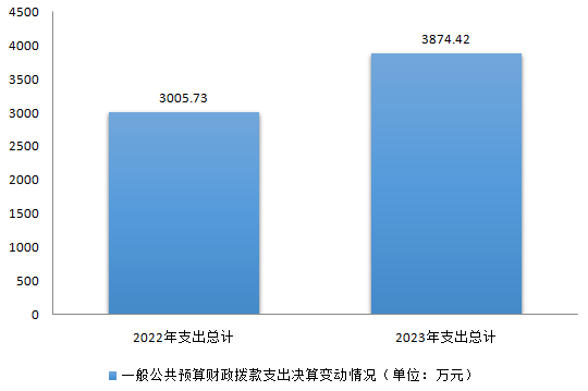 2023年度一般公共预算支出决算数为3874.42万元,完成预算100.00%。其中:
