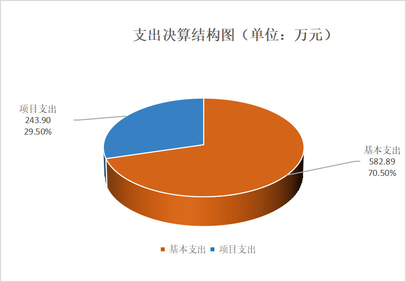 2023年度本年支出合计826.79万元,其中:基本支出582.89万元,占70.5%;项目支出243.9万元。