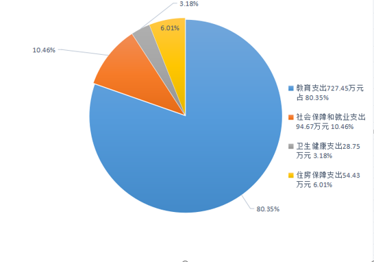 2023年度一般公共预算财政拨款支出905.3万元,主要用于以下方面:教育支出727.45万元,占80.35%;;社会保障和就业支出94.67万元,占10.46%;卫生健康支出28.75万元,占3.18%;住房保障支出54.43万元,占6.01%。