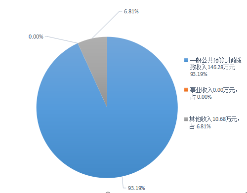 2023年度本年收入合计156.97万元,其中:一般公共预算财政拨款收入146.28万元,占93.19%;政府性基金预算财政拨款收入0万元,占0%;国有资本经营预算财政拨款收入0万元,占0%;上级补助收入0万元,占0%;事业收入0万元,占0%;经营收入0万元,占0%;附属单位上缴收入0万元,占0%;其他收入10.68万元,占6.81%。