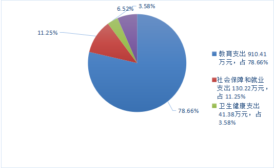 2023年度一般公共预算财政拨款支出1157.46万元,主要用于以下方面:一教育支出910.41万元,占78.66%;社会保障和就业支出130.22万元,占11.25%;卫生健康支出41.38万元,占3.58%;住房保障支出75.45万元,占6.52%。