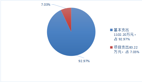 2023年度本年支出合计1185.42万元,其中:基本支出1102.20万元,占92.97%;项目支出83.22万元,占7.03%。