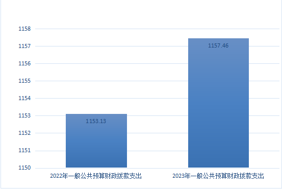 2023年度财政拨款收、支总计均为1157.46万元。与2022年度相比,财政拨款收、支总计各增加4.33元,增长0.04%。主要变动原因是教育支出、社会保障和就业支出、卫生健康支出、住房保障等增长。