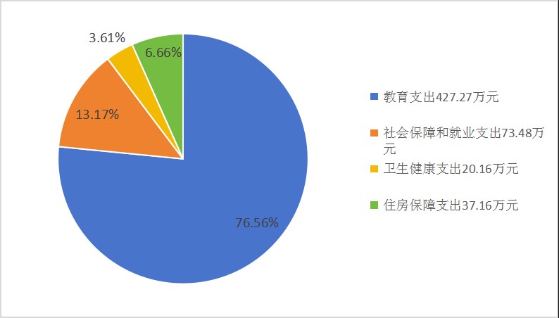 2023年度一般公共预算财政拨款支出558.07万元,主要用于以下方面:教育支出427.27万元,占76.56%;社会保障和就业支出73.48万元,占13.17%;卫生健康支出20.16万元,占3.61%;住房保障支出37.16万元,占6.66%。