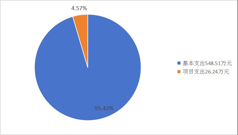 2023年度本年支出合计574.75万元,其中:基本支出548.51万元,占95.43%;项目支出26.24万元,占4.57%;上缴上级支出0万元,占0%;经营支出0万元,占0%;对附属单位补助支出0万元,占0%。