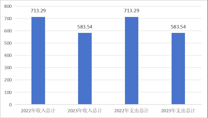2023年度收、支总计均为583.54万元。与2022年度相比,收、支总计各减少129.75万元,下降18.19%。主要变动原因一是教师人数减少,二是学生人数减少生均财政拨款收入相应减少等。