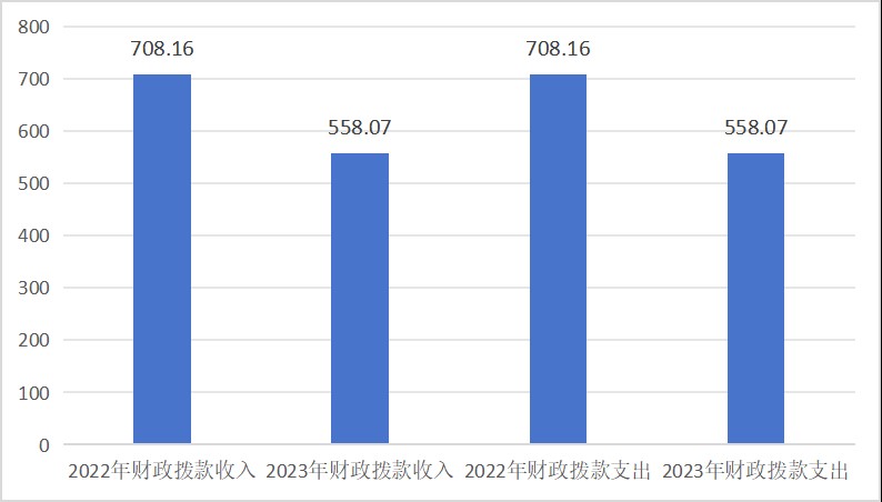 2023年度财政拨款收、支总计均为558.07万元。与2022年度相比,财政拨款收、支总计各减少150.09万元,下降21.19%。主要变动原因:一是教师人数减少;二是学生人数减少生均财政拨款收入相应减少等。