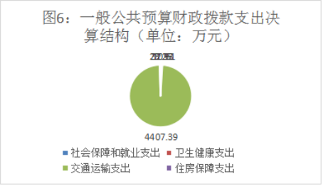 2023年度一般公共预算财政拨款支出4474.17万元,主要用于以下方面:社会保障和就业支出32.93万元,占0.74%;卫生健康支出10.61万元,占0.24%;交通运输支出4407.39万元,占98.51%;住房保障支出23.25万元,占0.52%。
