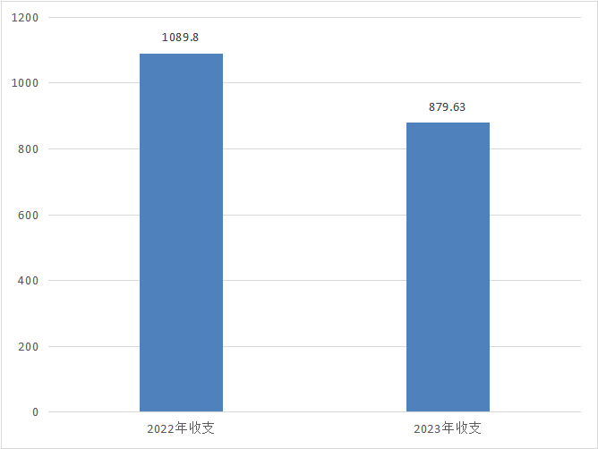 2023年度收、支总计均为879.63万元。与2022年度相比,收、支总计各减少210.17万元,下降19.29%。主要变动原因是青溪镇县域医疗次中心项目减少,资金减少。