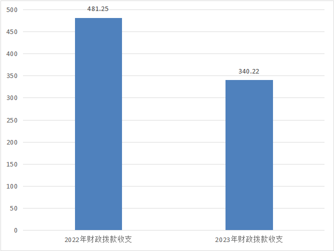 2023年度财政拨款收、支总计均为340.22万元。与2022年度相比,财政拨款收、支总计各减少141.03万元下降29.3%。主要变动原因是县域医疗次中心项目减少,财政拨款减少。