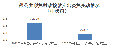 2023年度一般公共预算财政拨款支出273.73万元,占本年支出合计的38.99%。与2022年度相比,一般公共预算财政拨款支出减少3.06万元,下降1.12%。主要变动原因是本年财政拨款收入减少,因此支出减少。