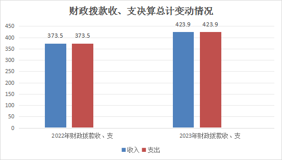 2023年度财政拨款收、支总计均为373.5万元。与2022年度相比,财政拨款收、支总计各减少50.4万元,下降13.49%。主要变动原因是辖区人口减少,导致项目资金收入减少。