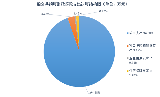 2023年度一般公共预算财政拨款支出1539.37万元,主要用于以下方面:教育支出1457.45万元,占94.68%;社会保障和就业支出48.77万元,占3.17%;卫生健康支出11.23万元,占0.73%;住房保障支出21.92万元,占1.42%。