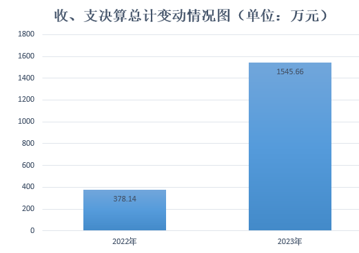 2023年度收、支总计均为1545.66万元。与2022年度相比,收、支总计各增加1167.52万元,增长308.75%。主要变动原因是一是教师正常晋升及岗位变动工资增加,二是新增梁沙幼儿园建设项目,三是生均财政拨款和教育事业收入相应增长等。