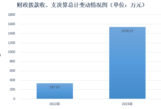 2023年度财政拨款收、支总计均为1539.37万元。与2022年度相比,财政拨款收、支总计各增加1202.3万元,增长356.69%。主要变动原因是一是教师正常晋升及岗位变动工资增加,二是新增梁沙幼儿园建设项目,三是生均财政拨款和教育事业收入相应增长等。
