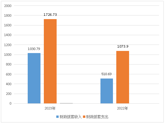 2023年财政拨款收入总计1030.79万元、支出总计1726.73万元。与2023年相比,财政拨款收入总计较上年增加520.1万元、财政拨款支出总计较上年增加652.73万元;财政拨款收入增加101%,财政拨款支出增加37.8%。主要变动原因是2020年开始实施的诊治能力提升项目,2022年财政拨款支出使用上年结转指标,2023年诊治能力提升项目重新下达预算437.22万元。