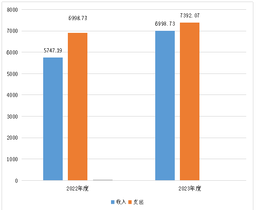 2023年度收入总计6998.73万元、支出总计7392.07万元。与2022年相比,收入总计增加1251.54万元、支出总计减少493.12万元,收入增加21%、支出减少0.07%。主要变动原因是诊治能力提升项目2022年财政拨款支出使用上年结转指标,2023年诊治能力提升项目重新使用新指标,项目补助收入增加437.00万元。