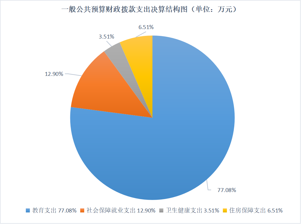 2023年度一般公共预算财政拨款支出863.9万元,主要用于以下方面:教育支出665.9万元,占77.08%;社会保障和就业支出111.46万元,占12.90%;卫生健康支出30.36万元,占3.51%;住房保障支出56.18万元,占6.51%。