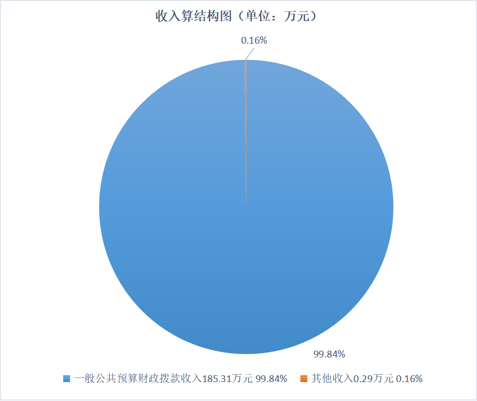 2023年度本年收入合计185.6万元,其中:一般公共预算财政拨款收入185.31万元,占99.84%;其他收入0.29万元,占0.16%。