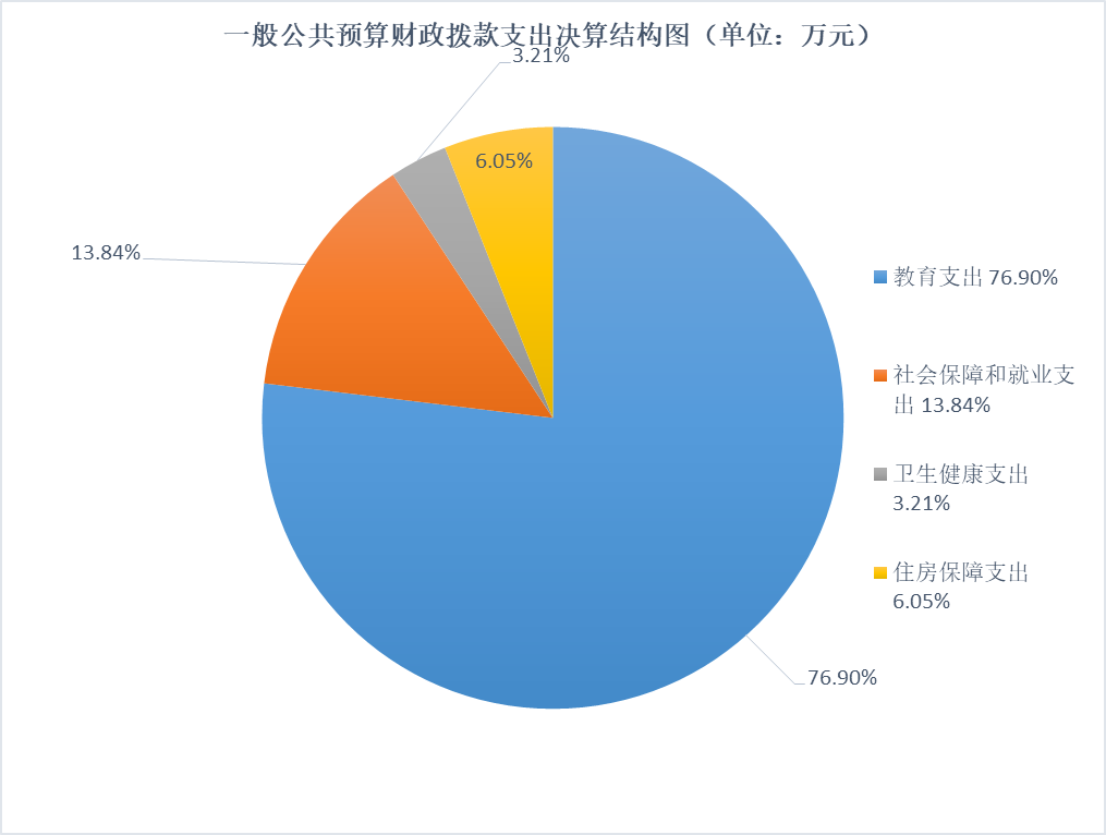 2023年度一般公共预算财政拨款支出185.31万元,主要用于以下方面:教育支出142.5万元,占76.90%;社会保障和就业支出25.65万元,占13.84%;卫生健康支出5.95万元,占3.21%;住房保障支出11.21万元,占6.05%。