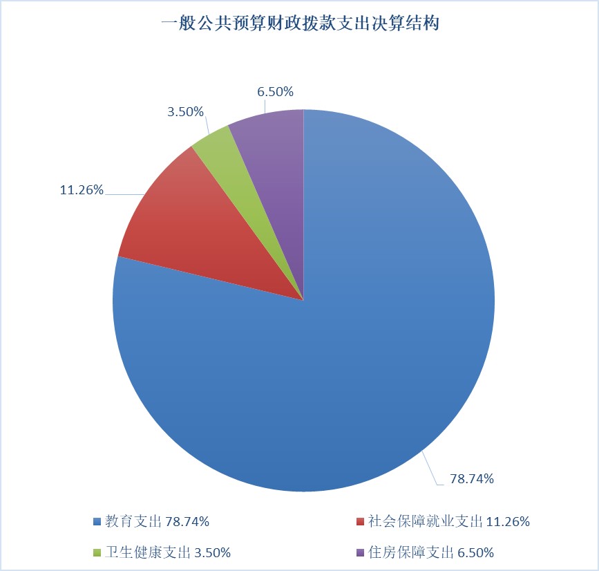 2023年度一般公共预算财政拨款支出359.32万元,主要用于以下方面:教育支出282.94万元,占78.74%;社会保障和就业支出40.46万元,占11.26%;卫生健康支出12.54万元,占3.49%;住房保障支出23.37万元,占6.51%。
