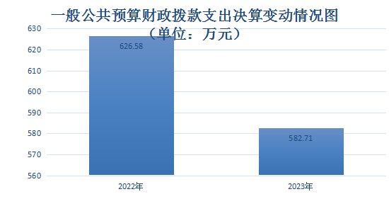 青川县沙州初级中学校2023年度一般公共预算财政拨款支出582.71万元,占本年支出合计的98.18%。与2022年相比,一般公共预算财政拨款支出减少43.87万元,下降7.00%,主要变动原因是学校布局调整,师生人数减少,教育支出、社会保障和就业支出、卫生健康支出、住房保障等减少。