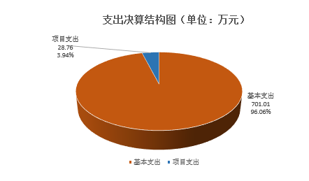 2023年度本年支出合计729.77万元,其中:基本支出701.01万元,占96.05%;项目支出28.76万元,占3.94%。
