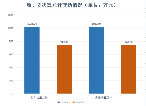 2023年度收、支总计均为743.32万元。与2022年度相比,收、支总计各减少277.72万元,下降27.2%。主要变动原因是在职人员退休工资福利支出减少。