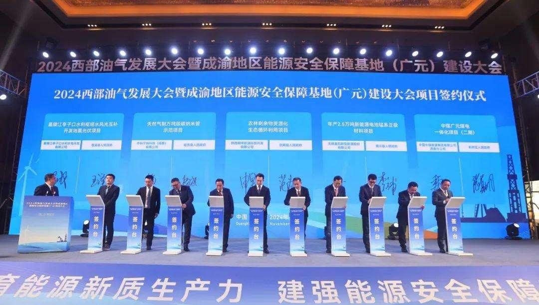 近日,2024西部油气发展大会暨成渝地区能源安全保障基地(广元)建设大会在广元利州区举行,现场签订战略合作协议8个,签约能源产业项目23个,总投资389亿元。其中,青川县签约项目3个,签约资金7.72亿元,年产2.5万吨新能源电池锰系正极材料项目在主席台展示签约。