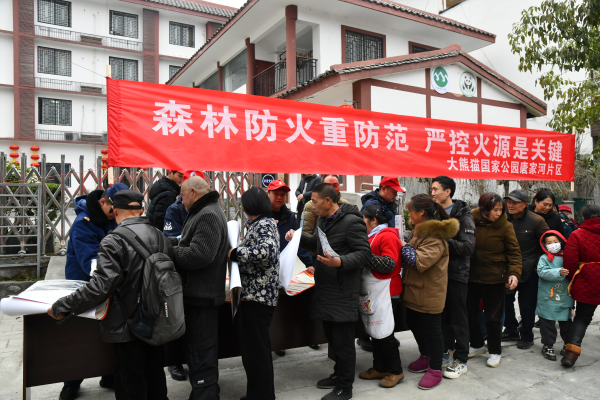 活动中,工作人员通过设置宣传点、走村入户等方式向群众发放宣传袋、围裙、宣传单、历画等宣传资料,并利用音频播放“2025年森林防火命令”、悬挂森林防火标语、签订《森林防火告知书》,广泛宣传森林防火法律法规知识,呼吁广大群众在大熊猫国家公园内严禁一切野外用火,春节期间,倡导鲜花祭祀、网上祭祀等文明祭祀方式,筑牢森林火灾“防火墙”,严防森林火灾发生。本次宣传活动发放森林防灭火宣传折页4000余张、历画2000张、围裙1500件,帆布袋1000个。宣传覆盖两镇(青溪镇、三锅镇)六村(落衣沟村、魏坝村、石玉村、苏阳村、和平村、平桥村)5000余人次。