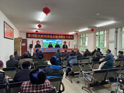在凉水、关庄等地敬老院,李忠和老人们亲切交谈,详细了解敬老院老人的日常生活情况、健康状况,叮嘱他们要注意身体,并为老人们送上慰问品,祝愿大家春节快乐、身体健康。