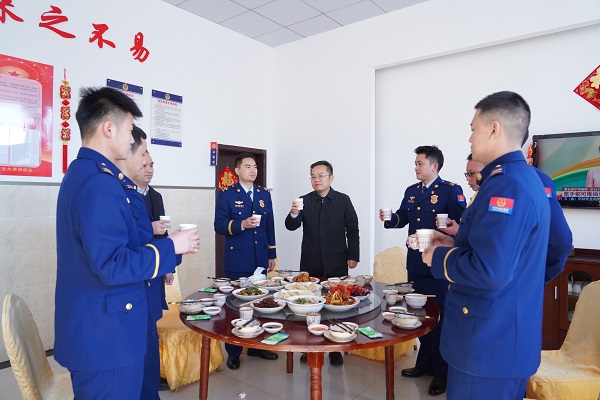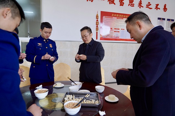 “过去一年,你们在维护国家安全、社会大局稳定及保障人民安居乐业等方面作出突出贡献,辛苦了,给你们拜年!”在县消防救援大队,程远泽看望慰问了正在坚守岗位的一线消防指战员,督导检查了值班值守情况,并与他们一起包饺子、话家常,现场欢声笑语不断。程远泽说,春节是阖家团圆的日子,广大消防指战员仍坚守在人民最需要的地方,守卫着城市的平安,向大家默默奉献表示感谢,希望这一盘盘热气腾腾的饺子让大家感受到家的味道和温暖。希望在新的一年里,广大消防指战员以更高的工作标准、更严的工作要求、更实的工作作风,扎实做好防灭火和应急救援准备各项工作,忠实履行职责使命,时刻保持备战状态,加强训练,提高战斗力,为青川经济社会发展和人民群众安居乐业创造更加安全稳定的社会环境。