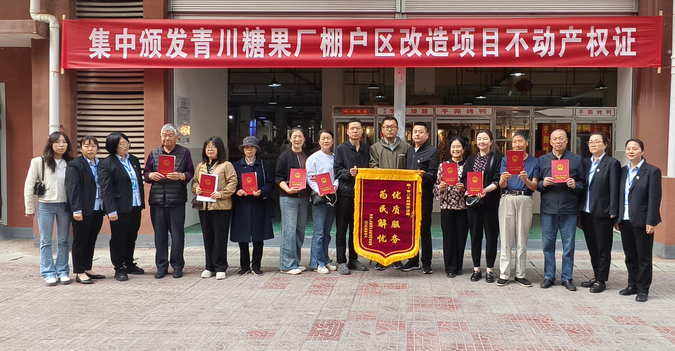 为推动群众身边不正之风和腐败问题集中整治工作走深走实,切实把民生实事办好办实、办出成效。4月28日,青川县自然资源局在糖果厂小区举行不动产权证集中发放仪式,颁证仪式现场,15户居民顺利领到不动产权证书,居民代表将绣有“优质服务、为民解忧”的锦旗送到县自然资源局干部手中。颁证结束后,不动产登记工作人员围绕群众关切问题,现场宣讲不动产登记政策法规,并就办证流程、产权变更等问题进行一对一答疑解惑。