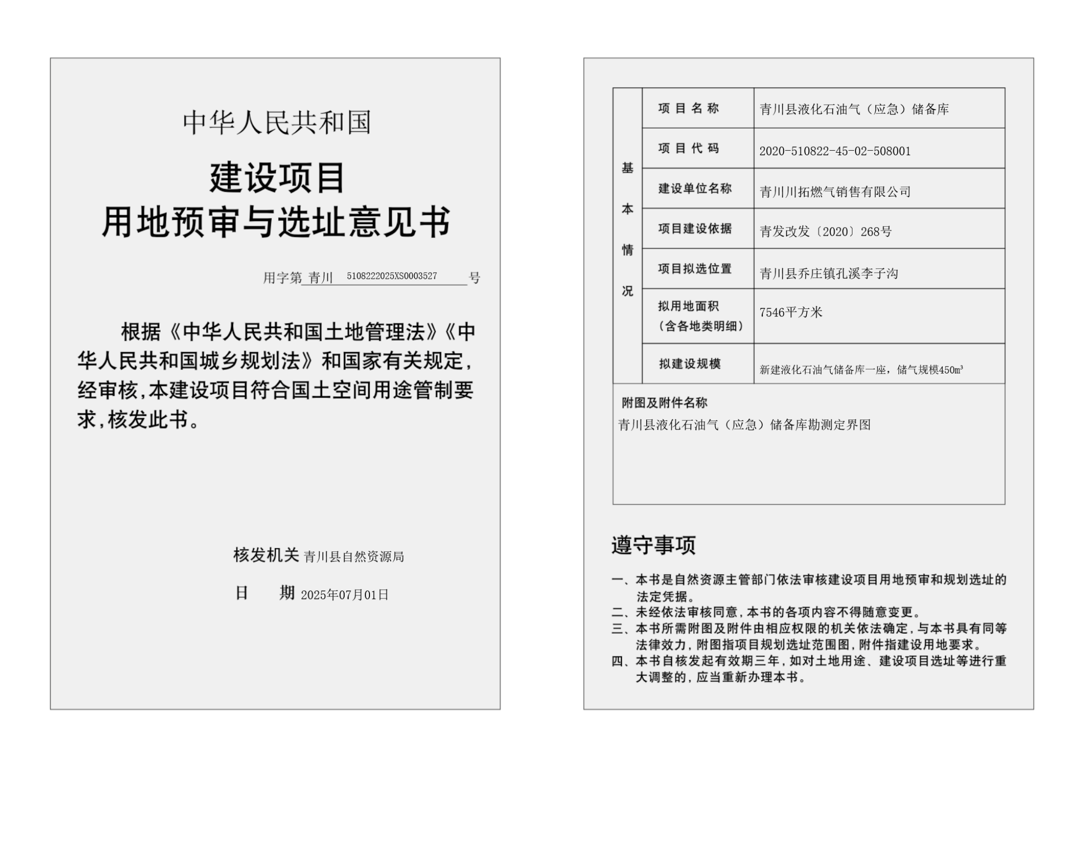 青川县液化石油气(应急)储备库用地预审与规划选址意见书公示